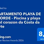 Το Apartamento Playa De Estorde - Piscina Y Playa Para Disfrutar A Costa Da Morte Cee 50 τ.μ. Βρίσκεται στην παραλία της πόλης και διαθέτει εσωτερική αυλή με θέα στη θάλασσα. Stoupa Tenda Turística απέχει 5 λεπτά οδικώς από το διαμέρισμα, ενώ ο Φάρος του Fisterra βρίσκεται σε απόσταση 1 χλμ.